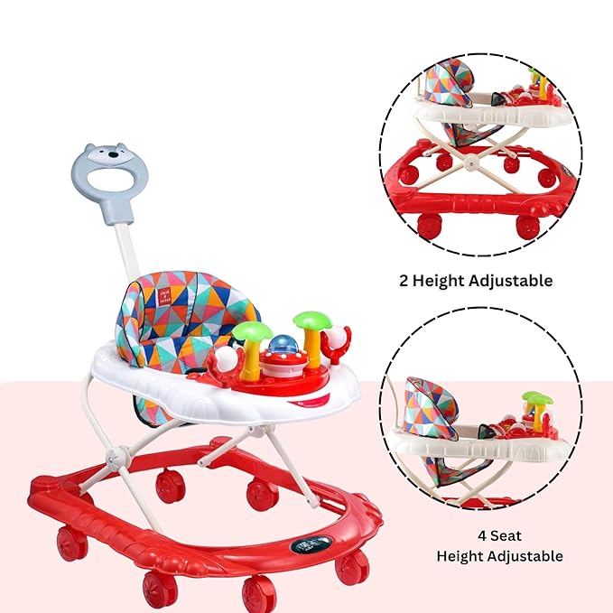 - HEIGHT ADJUSTABILITY: This Cute B&C Musical Activity Walker Equipped with 2 height adjustment settings, this walker grows with your child, ensuring they remain at the ideal height as they get taller. It’s designed to support toddlers up to 13kgs.