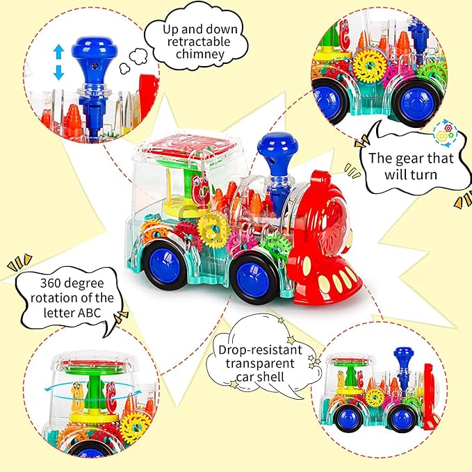 • 【Best Early Educational Toys】The train body uses a unique transparent design, which looks very cool. As the toy cars moves, children can clearly see the internal gears turning, helping them understand mechanical concepts earlier and develop imagination, cognitive abilities and motor skills.