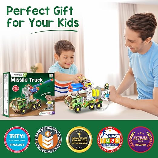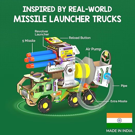 • BUILD YOUR OWN MISSILE TRUCK: Build an air-powered military vehicle with Smartivity’s DIY Missile Truck kit. Perfect for kids aged 8 to 14.