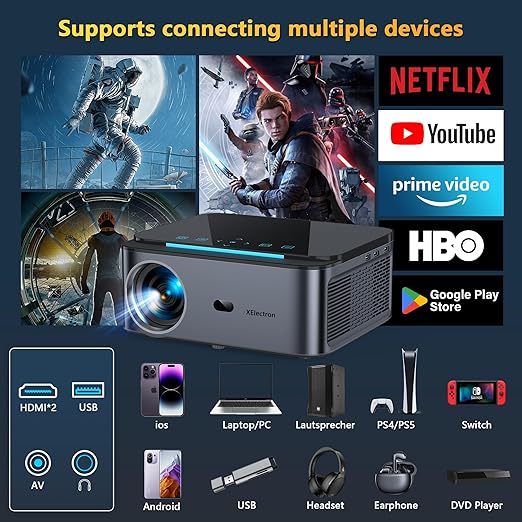 - 🔥Special Features 【Fully Automatic】Auto Focus + Auto Keystone + Auto Obstacle Avoidance + Auto Tilt Correct + Auto Screen Fit. Android 12 – A53 Quad Core CPU 64 Bit 2GB RAM + 32GB ROM | Preloaded with Netflix, Prime, Hotstar etc,